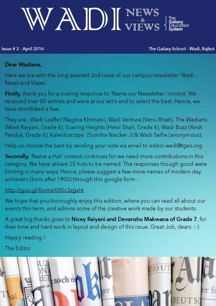 Wadi News and Views Issue-2 | April 2016 - TGSW - The Galaxy School - Wadi